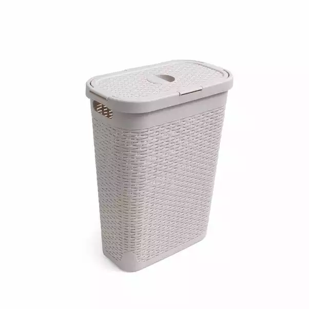 This rattan effect laundry basket has a 40 litre capacity and slim stylish profile, ideal for fitting in tighter spaces with carry handles for easy use.