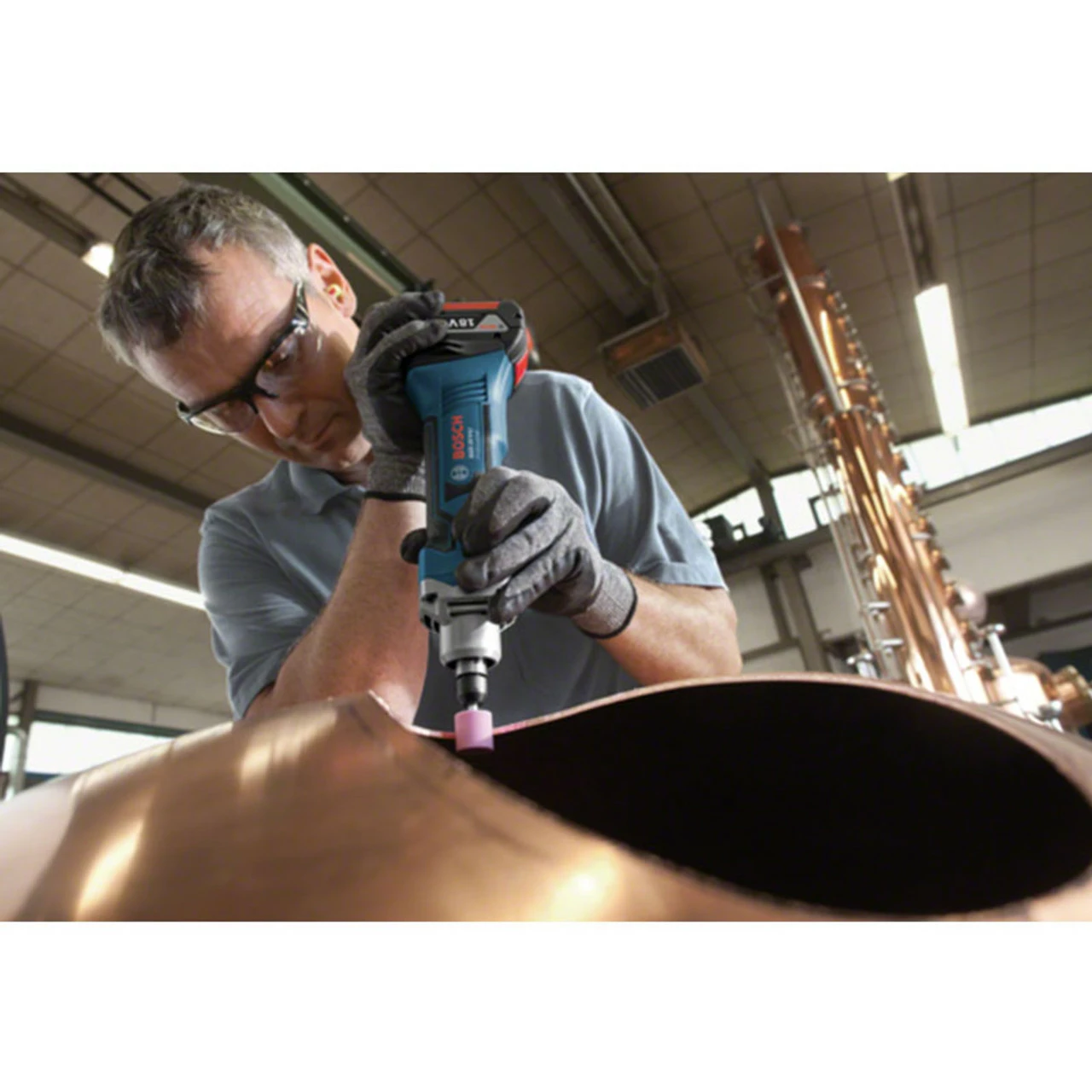 The Bosch GGS 18 VLI Straight Grinder is a compact professional cordless straight grinder that has an extremely robust and durable 4-pole high-performance motor for a long life. Its compact design is perfect for working in tight spaces, and its low weight makes it comfortable to handle. It is fitted with Electronic Motor Protection (EMP) that protects the motor against overload and ensures a long lifetime.