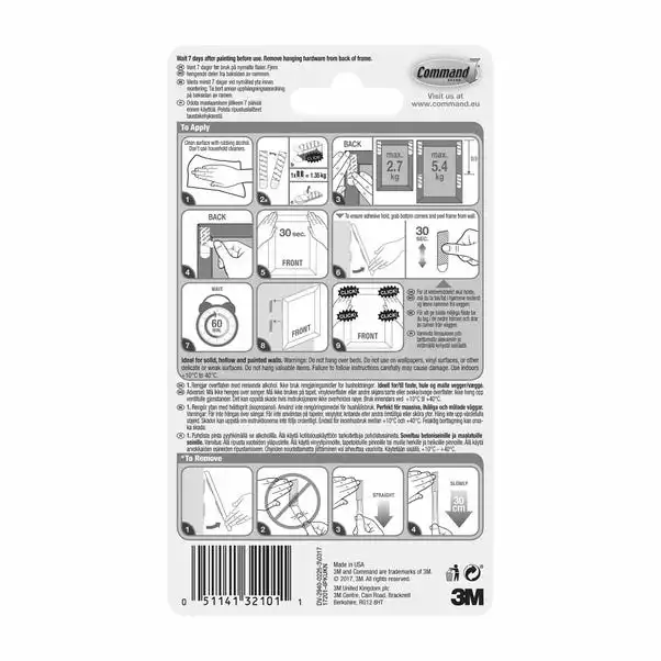 These command hooks are designed to hold up to 5.4kg weight and are super easy to apply, without the need for nails, screws or drills. The clear hooks blend in seamlessly with decor and help to keep the frames flat and secure to the wall. When you decide to remove them from the wall, the strips stretch off damage-free, leaving no holes, marks or sticky residue, making them suitable for most smooth surfaces such as painted walls, tiles, metal and wood.