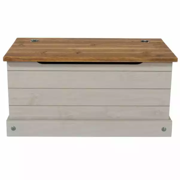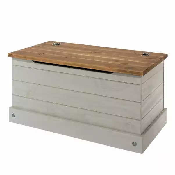 Crafted from pine wood with a simple design, the Corona Grey Storage Trunk makes a sturdy addition to the home and a fantastic storage space.