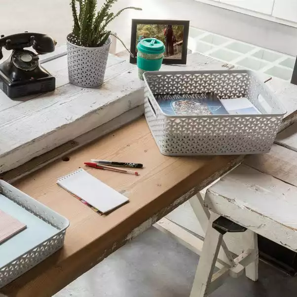 With a generous 13 litre capacity, this grey storage basket from Curver is a modern interpretation of the traditional rattan fibre look but has been crafted from plastic to make it durable and easy to wipe clean. In a versatile grey colourway, the basket will suit a variety of decors and features easy to carry handles.