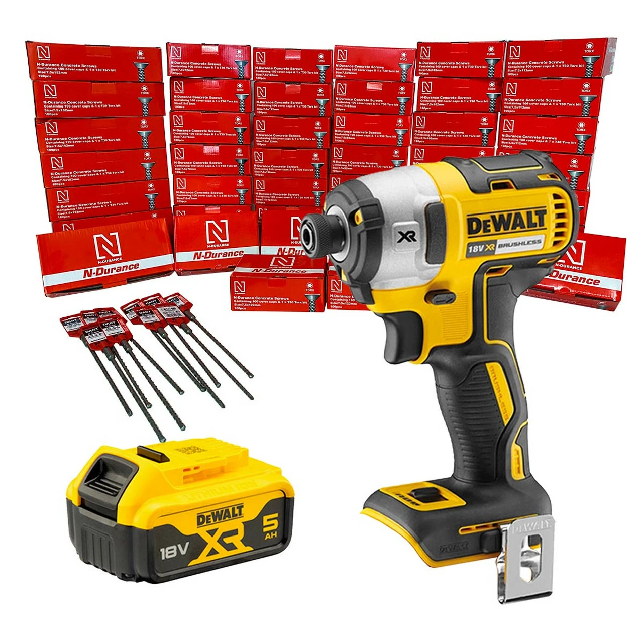 DeWalt DCF887N 18V Impact Driver with 1x 5.0Ah Battery & Concrete Frame Screw Pack, 72 – 152mm (5000 Mixed Pack)