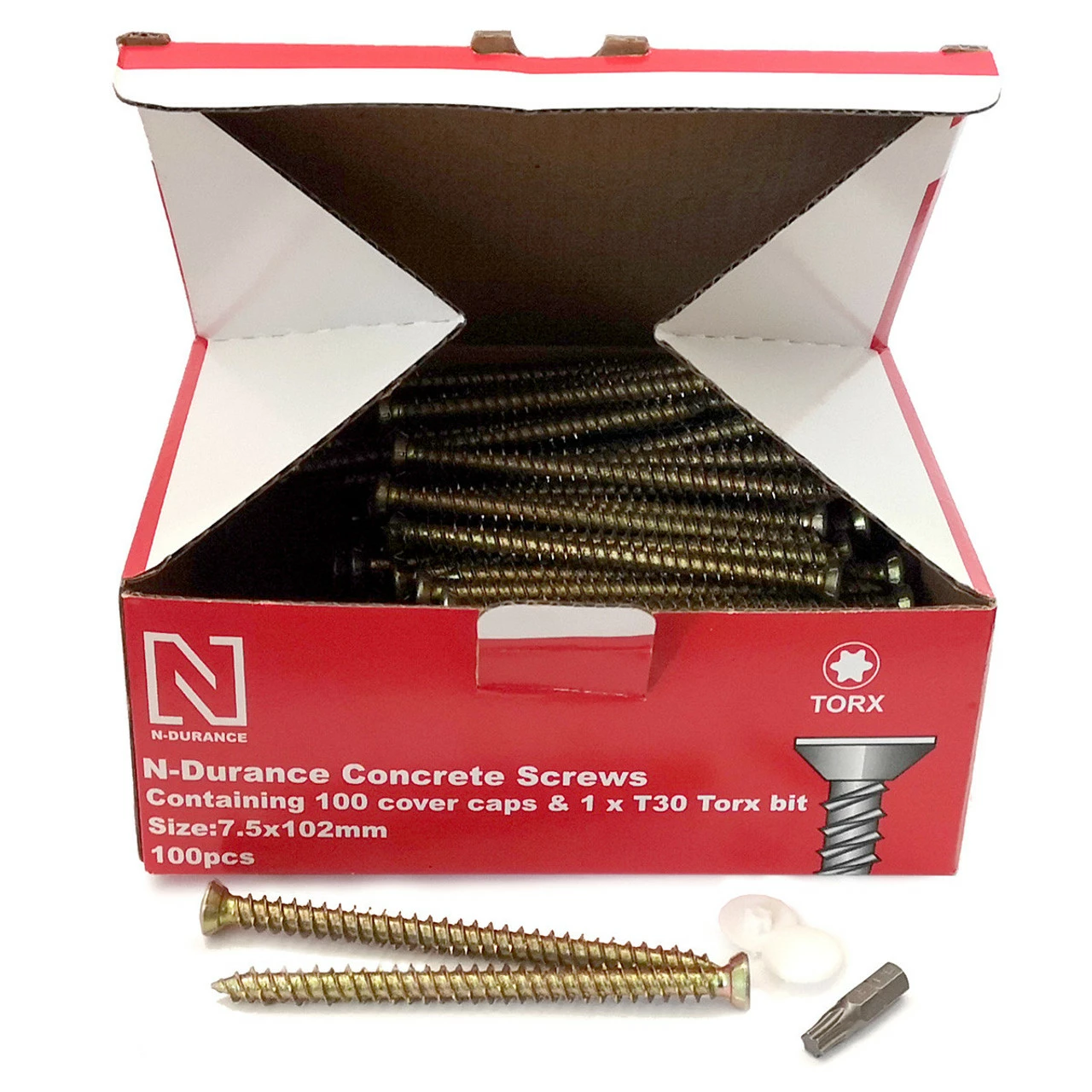 - 10x N-Durance Torx Concrete Frame Screws 7.5 x 102mm (100 Box)