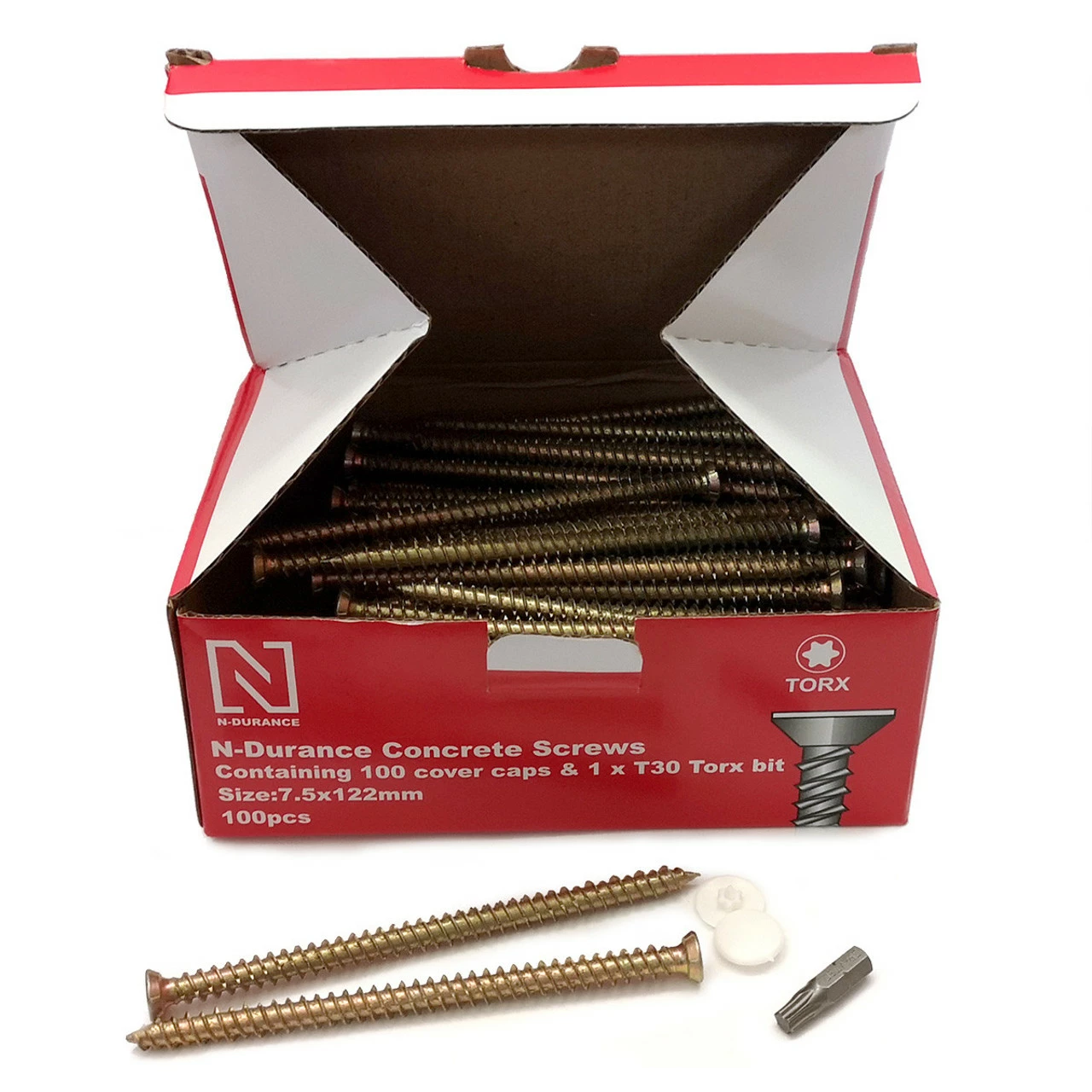 - 8x N-Durance Torx Concrete Frame Screws 7.5 x 122mm (100 Box)