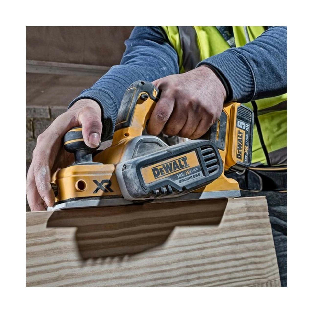 This cordless DeWalt planer boasts a DeWalt XR brushless motor to eliminate wasted energy and improve the runtime of the tool. This efficient technology works in tandem with a high-capacity XR battery, providing maximum output that’s truly best-in-class. The DeWalt DCP580N has enough runtime to power a typical day’s work with just one charge, ideal for those looking to reduce costly downtime.