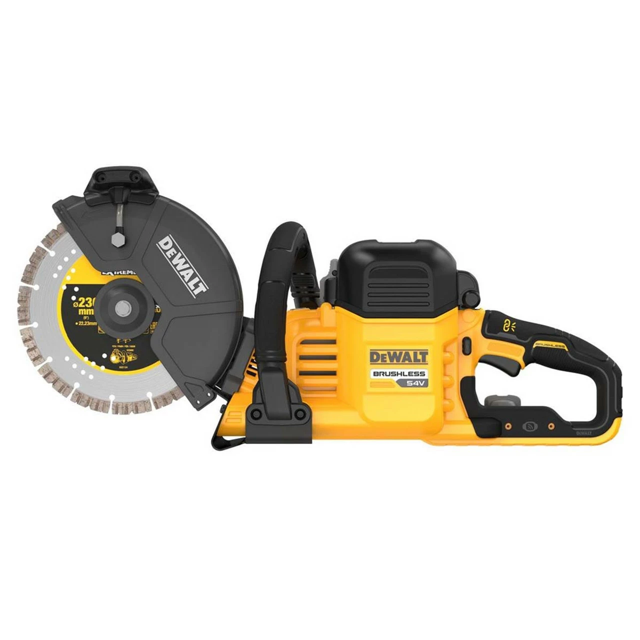 The DCS691N 54V XR Flexvolt 230mm Brushless Cut Off Saw is powered by all DeWalt XR Flexvolt batteries which gives you a whole host of advantages compared to a petrol powered alternative.This saw is ideal for landscaping, building, maintenance, roofers, and general construction work. Including starting on switch (no pull chord), it has no filters to clean, no maintenance, no refuelling area, lower noise and increased dust management.Â