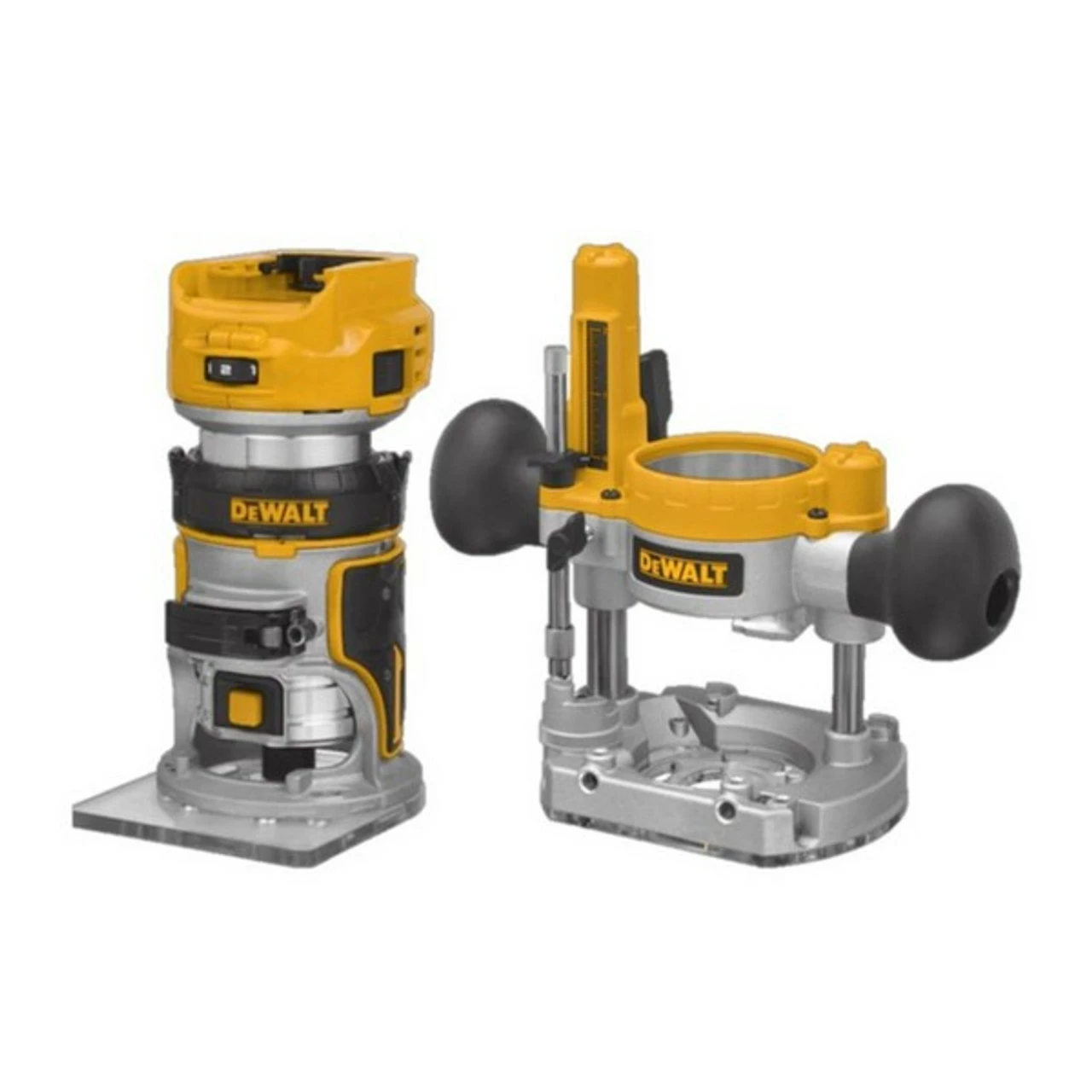 DeWalt DCW604NT 18v XR is DeWalt’s most waited Cordless Router, featuring interchangeable fixed or plunge bases & quick release tabs. Perfect for a variety of works, including routing inlay and hinge mortises, rounding edges, flush trimming, wood edging and much more! Comes supplied with fixed base, plunge base, T-STAK case, and wrench.Â
