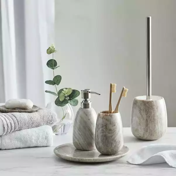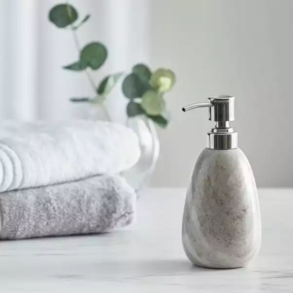 Boasting a unique and modern design, this marble lotion dispenser has been handcrafted from natural stone for a luxurious feel. This lotion dispenser can be used for a variety of liquids; shampoo, conditioner, body wash, hand soap, essential oils, dish soap, and more. Other matching Dorma marble accessories are also available.
