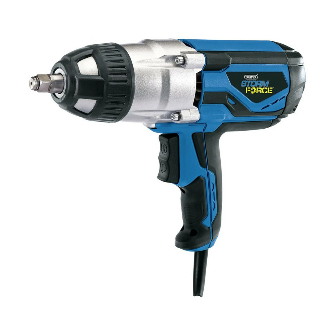 Powerful electric impact wrench and socket kit, ideal for mechanics, steel erectors, fitters, engineers and car enthusiasts. The massive 480Nm of torque makes light work of removing rusted – on or overtightened nuts and bolts. The ergonomic lightweight design is fitted with a soft grip anti slip handle, providing comfort even when used for prolonged periods. Fitted with a full metal gear box, an electric brake, thermal overload protection, forward/reverse rocker switch trigger and 6M of rubber cable and approved plug. Supplied with 4 x impact sockets 17, 19, 21, 23mm and a hardwearing plastic carry case.