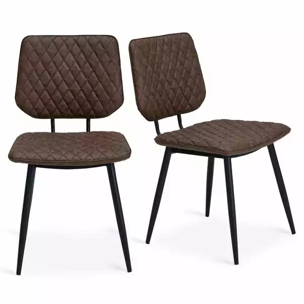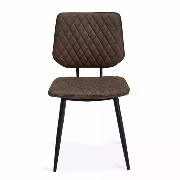 Upholstered in a practical yet luxurious faux leather, the Austin dining chair combines classic styling with a modern industrial twist. This chair features a gorgeous diamond quilted padded back and seat and is foam filled to provide additional comfort. The chair is finished in a stylish brown colourway and constructed with a sturdy powder coated steel frame.