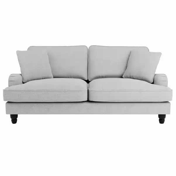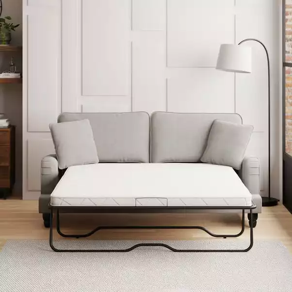Offering a modern take on a vintage style, the Beatrice sofa bed would make a magnificent addition to any home upholstered in a stunning light grey boucle fabric that’s soft to the touch. Complete with a pleated arm design, piped edge detailing and contrasting black painted, turned rubberwood legs, this sofa offers a stunning design that would bring a touch of sophistication and elegance to any room. As well as being undoubtedly stylish, the Beatrice is comfortable too, offering foam and fibre filled seats and a webbed and sprung base to provide optimal support, as well as plush fibre-filled back cushions and two matching scatter cushions.