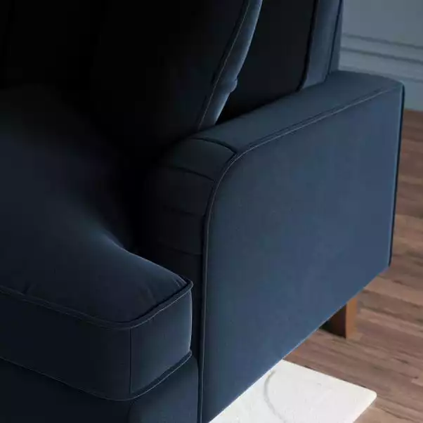 - Piped edge detailing and pleated arm