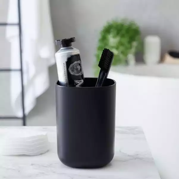 Ideal for adding a simple yet chic look to your bathroom, this black tumbler would compliment any bathroom interior. Beautifully crafted from plastic this tumbler has an anti bacterial coating making it ideal for everyday use. This tumbler can be used to hold toothbrushes, hair brushes, make-up brushes and more. Other coordinating bathroom accessories are also available.