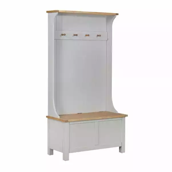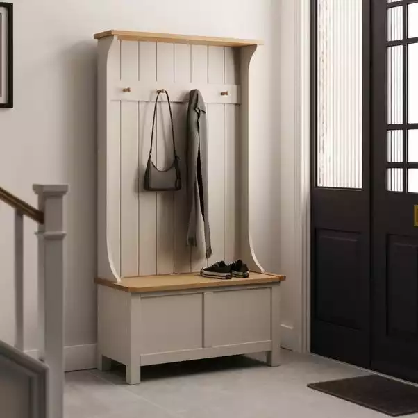 The Bromley Hallway Tall Unit is a great addition to any hallway or boot room, providing an ideal place to sit down whilst putting shoes on as well as storing shoes and accessories to keep the hallway clutter free. The upper coat rack has 4 hanging hooks while the bench storage compartment opens up with a lift arm top to store shoes and coats.