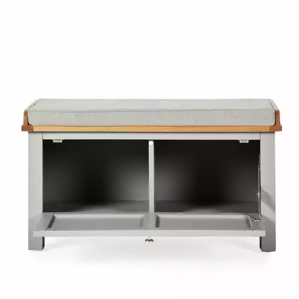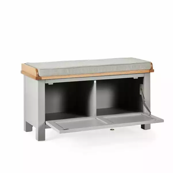 Perfect for storing away shoes or other household items, the Bromley Storage bench comes complete with a matching grey fabric cushion and a large drop-down door for easy access.