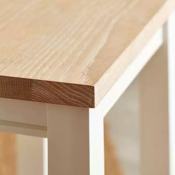 This stunning Churchgate Ivory Island Bar Stool is a strong, compact stool ideal for a breakfast bar seating area or kitchen island counter. Crafted from solid acacia frame and legs finished in a gorgeous white painted finish and MDF veneered oak tops, the rustic charm of this bar stool is a timeless addition in any home. The Churchgate Island Bar Stool pairs perfectly with the complementing items of the Churchgate line, but is versatile and stylish enough paired with other pieces within your home.