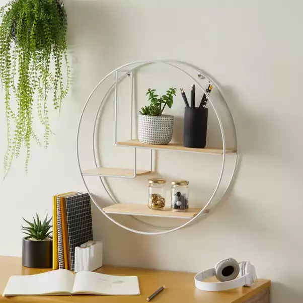 Wall art meets function with this Circle Shelf, the white frame and natural pine shelves create a stylish and perfect way to display your trinkets and more – all while adding sophistication to your space.