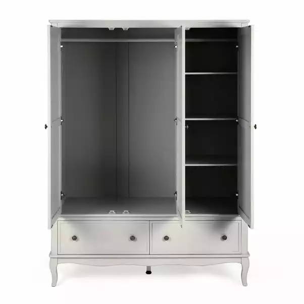 Perfect for any bedroom, the self-assembly Clara Triple wardrobe features a large hanging space and two large smooth-running drawers, complete with pull-out stops for added convenience. This wardrobe also features a second space with a second hanging rail and removable shelves, so you can customise this wardrobe to suit your needs.
