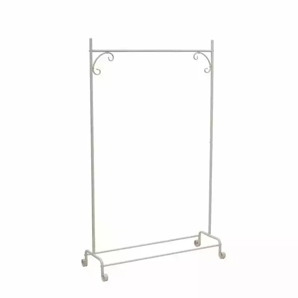 Perfect for hanging clothes to have on display, this clothes rail is a great alternative to a wardrobe for space saving storage. Created from sturdy, quality iron and finished in a modern and stylish cream colourway this clothes rail is suitable to compliment all types of decor and adds a beautiful elegant and vintage style to the room.