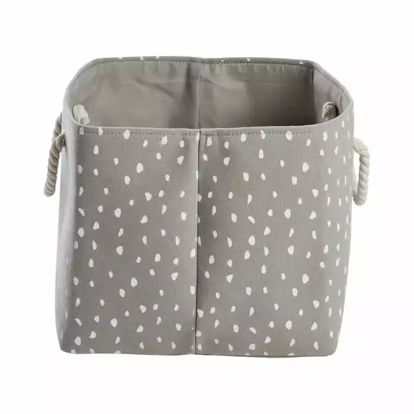 Organise your little ones room with our Dotty Storage Basket Grey, perfect for keeping bits and bobs neat and tidy, this storage basket with a cute dot print and modern colourway will complement an array of home decors. With a space saving design, this storage basket can be neatly folded away when not in use. This piece also has a rope handle for ease of use, making it both a practical and attractive piece to have in your home.