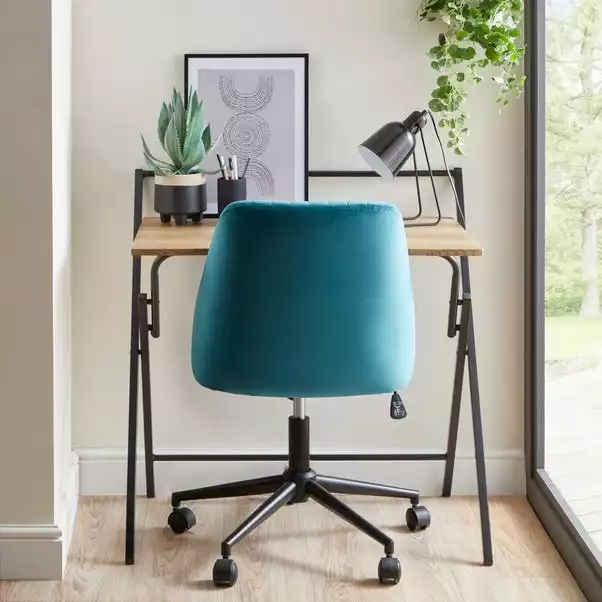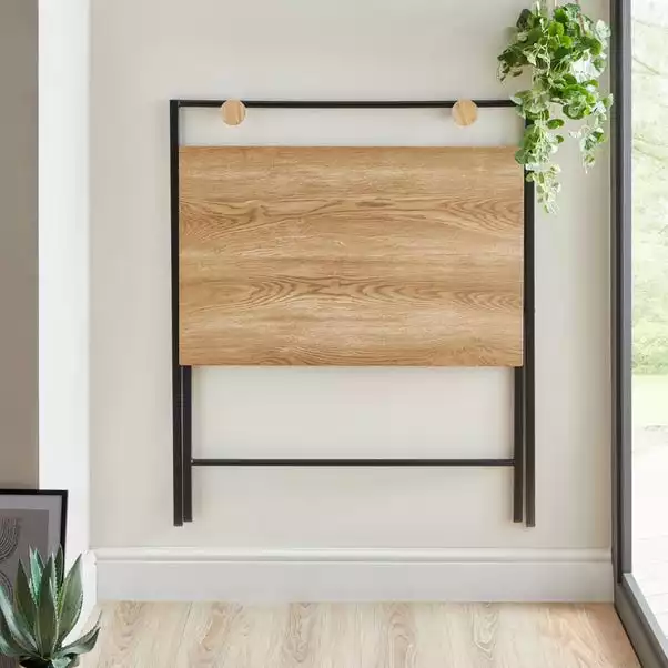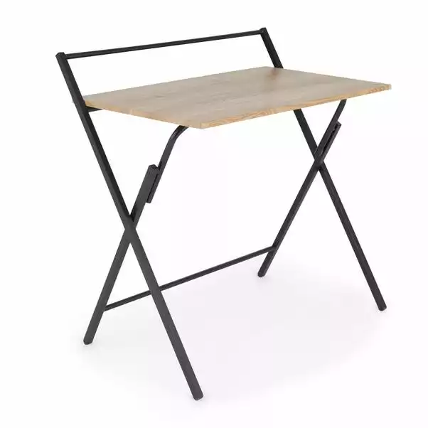 The perfect option for appartment living or smaller homes, the Evelyn folding desk features a spacious, oak effect worktop, paired with a black metal frame for a trendy modern look. This convenient desk can easily be folded flat to allow for easy storage when not in use, allowing you to make the most of your space and set up a workspace anywhere in your home.