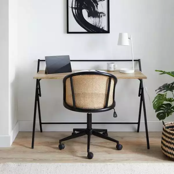 The Evelyn Wide Folding Desk is perfect for those occasional work-from-home days or when working in smaller spaces. The smart, foldable design allows the desk to be conveniently folded flat for easy storage when not in use. The Evelyn Wide Folding Desk comes with a spacious, wood effect worktop and trendy, modern metal frame.