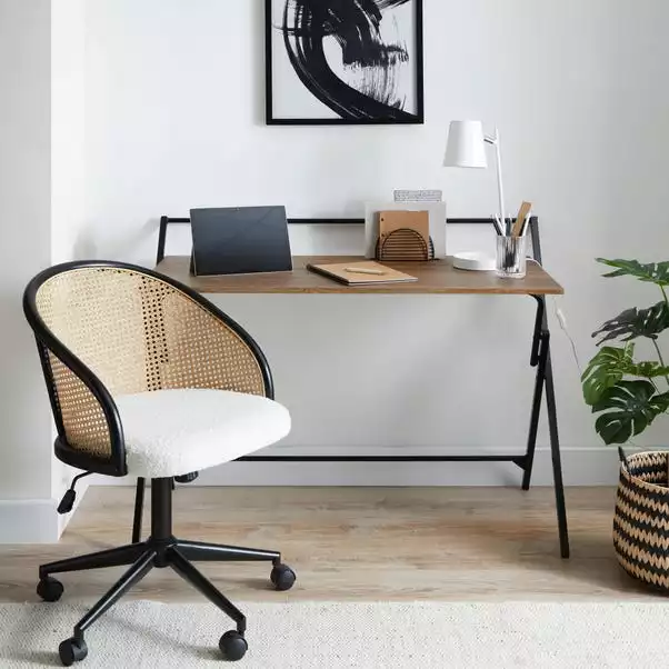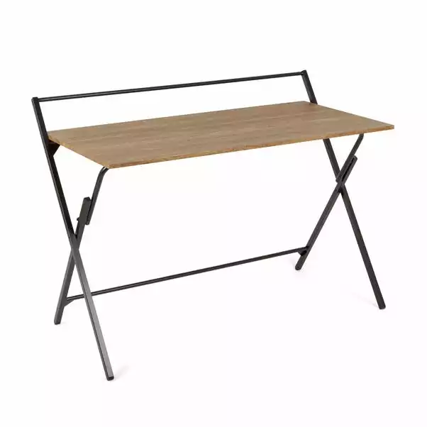 The Evelyn Wide Folding Desk is perfect for those occasional work-from-home days or when working in smaller spaces. The smart, foldable design allows the desk to be conveniently folded flat for easy storage when not in use. The Evelyn Wide Folding Desk comes with a spacious, wood effect worktop and trendy, modern metal frame.