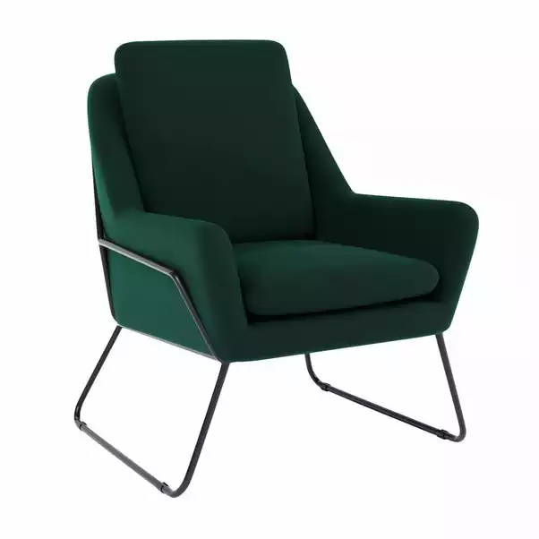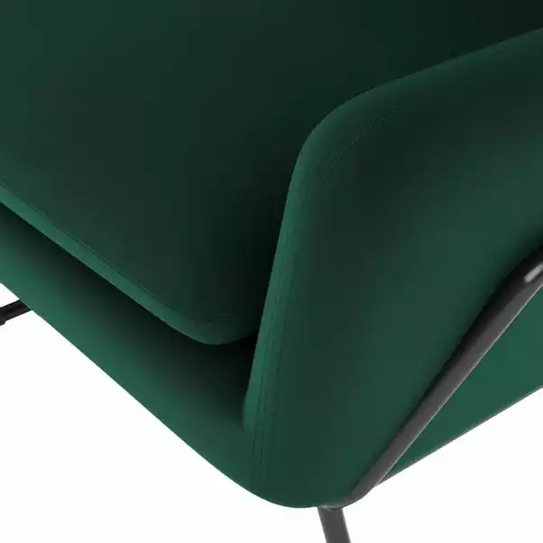 Introduce modern retro styling to your living room with this stylish Ferne II Velvet Chair, featuring soft touch velvet upholstery styled with a gorgeous padded seat and removable back cushion. The luxe design of the Ferne chair is complete with double needle stitched detailing on the edges and a stylish metal framed base in a striking black finish. As stylish as it is comfortable, the Ferne II Velvet Chair is the perfect place to sit back and unwind. Made with recycled materials.