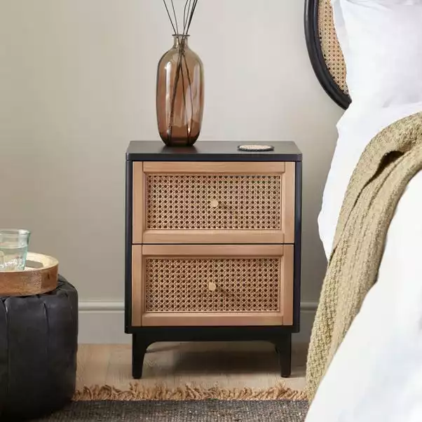 Dunelm Franco 2 Drawer Bedside Table, Black & Cane