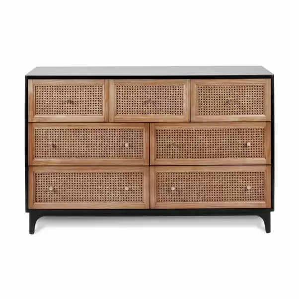 Don’t put off that task any longer. It’s time to clear the clutter, and sort out what really matters. This stylishly retro Franco 7 Drawer Chest is anything but old fashioned. The rattan fronts add a touch of character and they look great, whether grouped with other retro chest of drawers or on its own to make a statement.