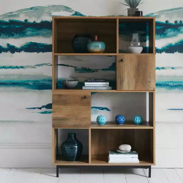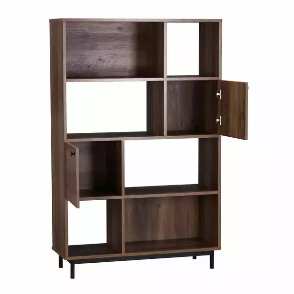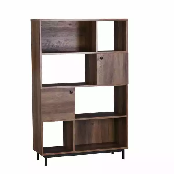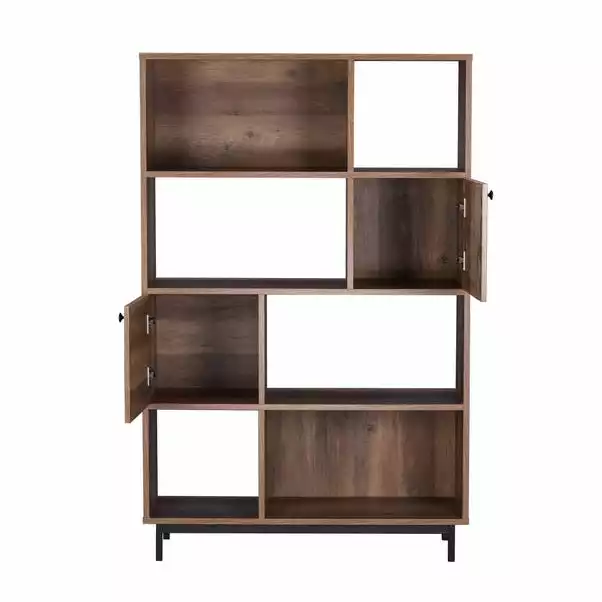 Designed with a straight edge finish, this stylish bookcase features six open shelves and two square cupboards, complete with adjustable hinged doors.