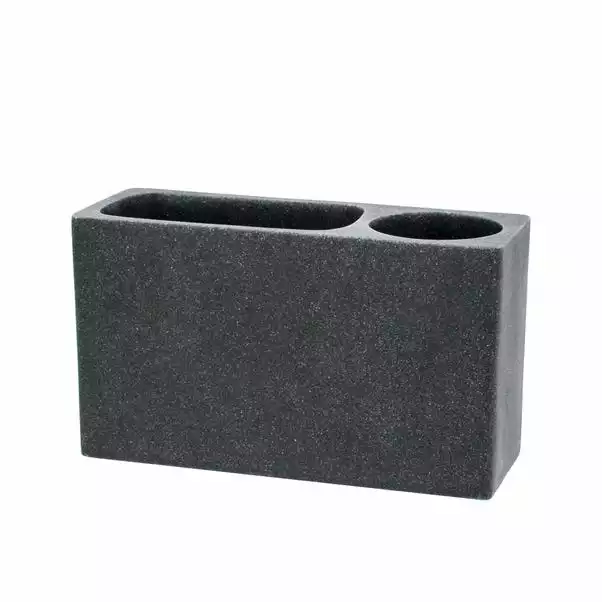 In a rectangular block form, this electric toothbrush holder is constructed from durable polyresin in a dark grey tone with a subtle speckled finish.