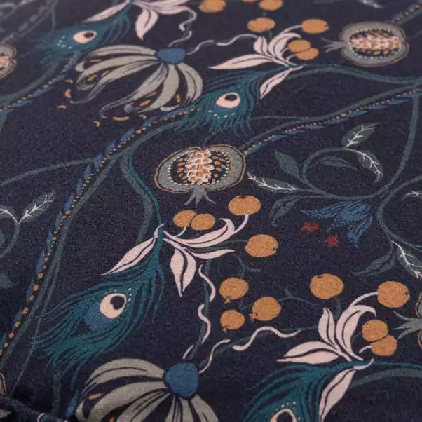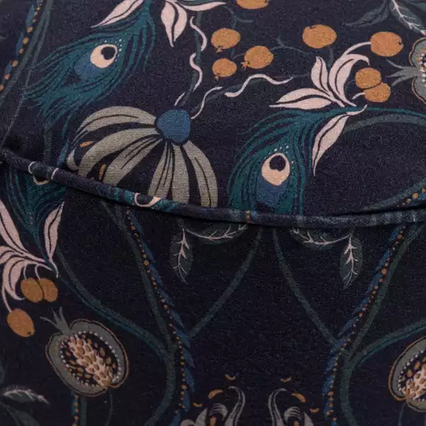 Our Havisham pouffe in a contemporary navy colourway features a printed design reminiscent of the beautiful designs of the arts and crafts movement. Made from a brushed woven fabric and finished with a stylish piping detail around the edge, this round pouffe is lightweight and durable. Use as additional seating, a footstool or as a side table to rest your tray on. Many other coordinating items available from our Havisham collection.