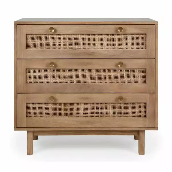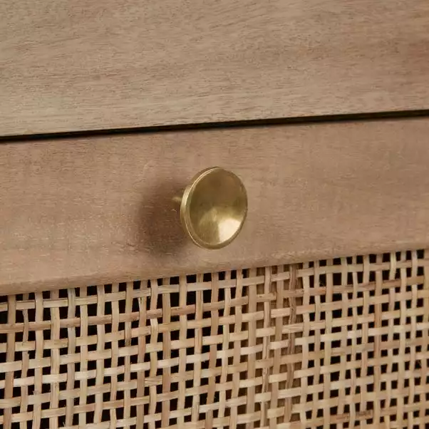 Bringing a modern flair to a retro style, the Indi range is perfect for any contemporary or global styled home. Characterised by the stunning natural rattan fronts and brass knobs, this range boasts a 100% mango wood construction and minimal assembly.