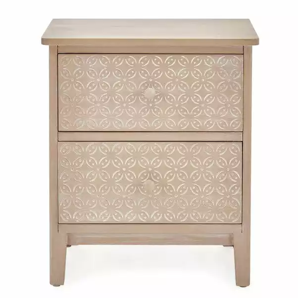 Looking for a chic and stylish bedside table that will instantly add a touch of elegance and rustic appeal to your bedroom? Look no further than the Ivy. The main highlight of this piece is the delicately carved drawer fronts that features a geometric floral pattern, adding a touch of boho-styling. The two drawers provide a great amount of space for all your bedtime needs and more, to help keep your space clutter-free for a peaceful night’s sleep.