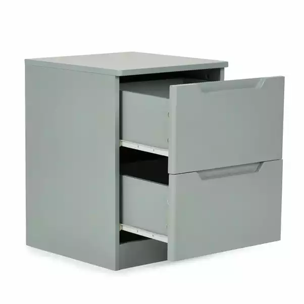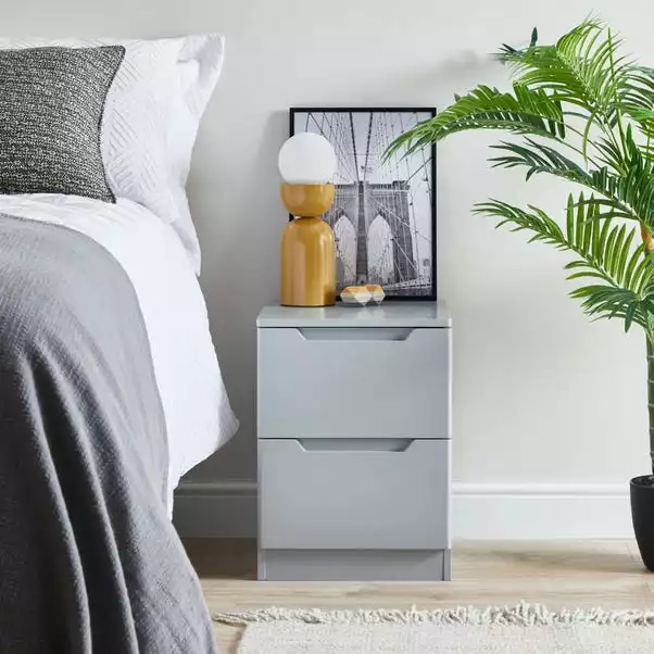 The Larson bedside table is just the place to perch your lamp and bedtime read ready for the cosy night ahead. Its simple design with minimal grooved handles has a sleek finish that pairs perfectly with any contemporary décor. The two deep drawers also allow a great amount of storage space so you can keep all your bits and bobs tidied away. Coordinating items are available in the Larson range so you can fully kit out your bedroom.