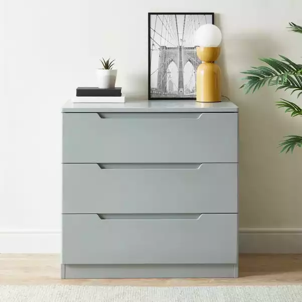 Offering a perfect blend of modern and minimal styling, the Larson chest of 3 drawers will add a fresh touch to any room of the house. Featuring a funky groove handle design, along with the 3 drawers makes this self-assembly chest both practical and attractive. With ample storage space, this chest is perfect for keeping your room organised and clutter free.