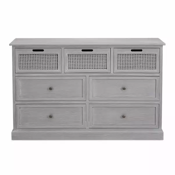 This fully assembled chest of drawers features four ample-size drawers with round handles and three smaller drawers to offer a generous amount of storage space.
