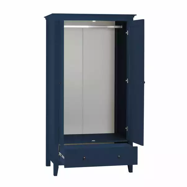 Fashioned in a choice of grey and white painted finishes with brushed grey handles, this gents wardrobe features a single hanging rail and one wide drawer for additional storage space.