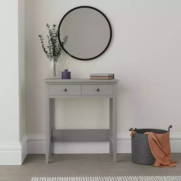 Designed with storage space, this dressing desk features two storage drawers with smooth metal runners and finished with brushed grey metal handles.