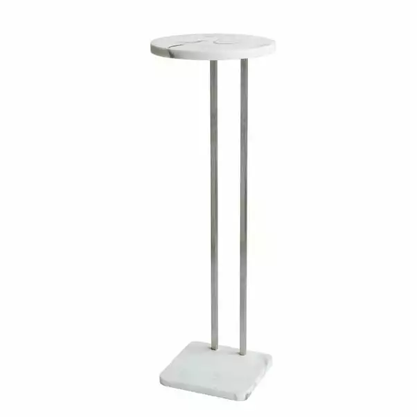 Simple yet stylish and the perfect bathroom accompaniment, this modern bath table, crafted from a quality stainless steel with white marble top finish, is great for keeping your bathroom products and accessories in one easy to access spot or to hold your glass and tealights while you relax in the bath.