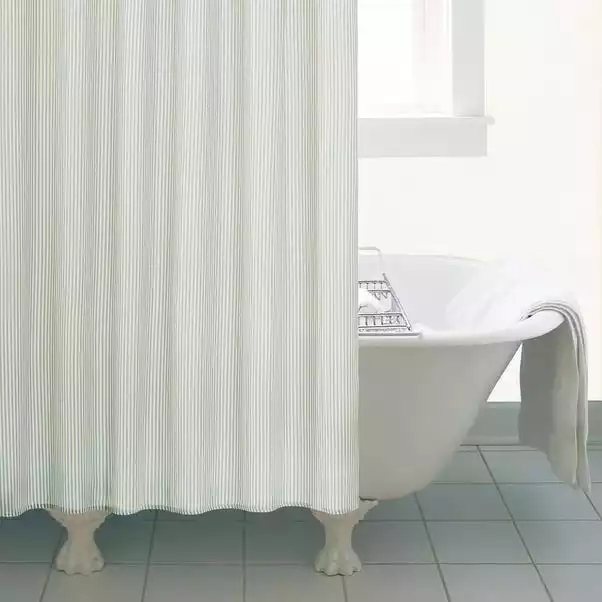 Patterned with a narrow striped design, this natural shower curtain is made from durable materials with a lustre coating for a soft feel, completed by an eyelet header.
