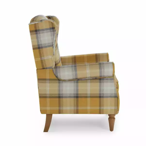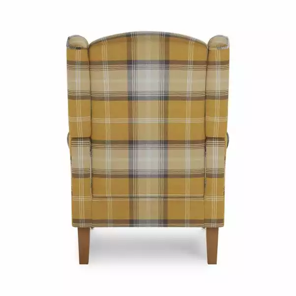 Take a rest in the timeless Oswald armchair, offering a comfortable sit thanks to the sumptuous foam and fibre filled cushions and supportive pocket sprung seat. Upholstered in a checked, smooth woven fabric, this stunning part assembly armchair boasts a classic wingback design, complete with scrolled arms, piped edge detailing and sturdy, oak finished wooden legs.