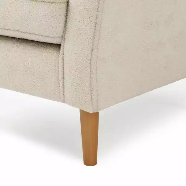 Offering a perfect blend of comfort and classic styling, the Oswald Sandstone Sherpa Armchair would make a beautiful accent piece in any home. Upholstered in a soft touch sandstone Sherpa fabric made from 60% recycled materials, paired with sturdy solid wood legs. The stunning Sherpa upholstery adds a modern touch to the traditional wingback and scrolled arms design, complete with a foam-fibre filled and pocket spring seat for exceptional comfort.