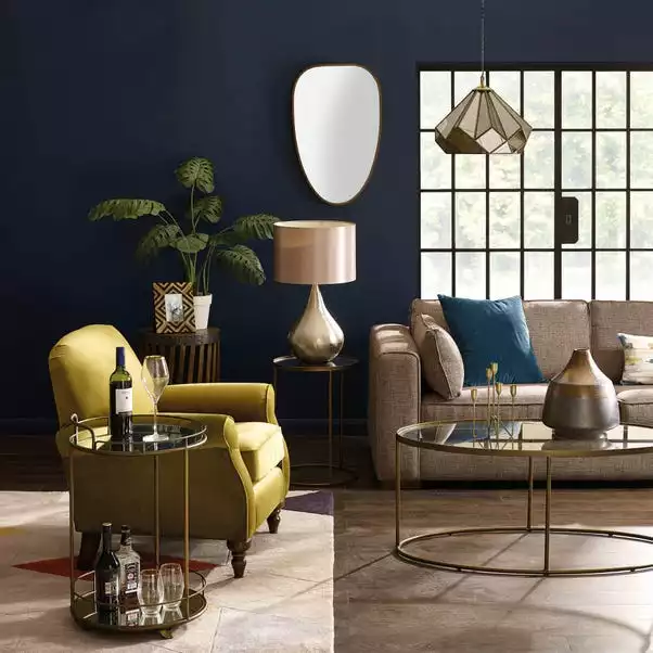Featuring a retro design crafted from iron and mirrored glass, this traditional drinks trolley is finished in an antique brass effect and offers a convenient handle and wheels for manoeuvrability.