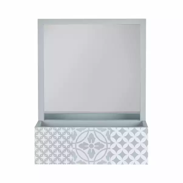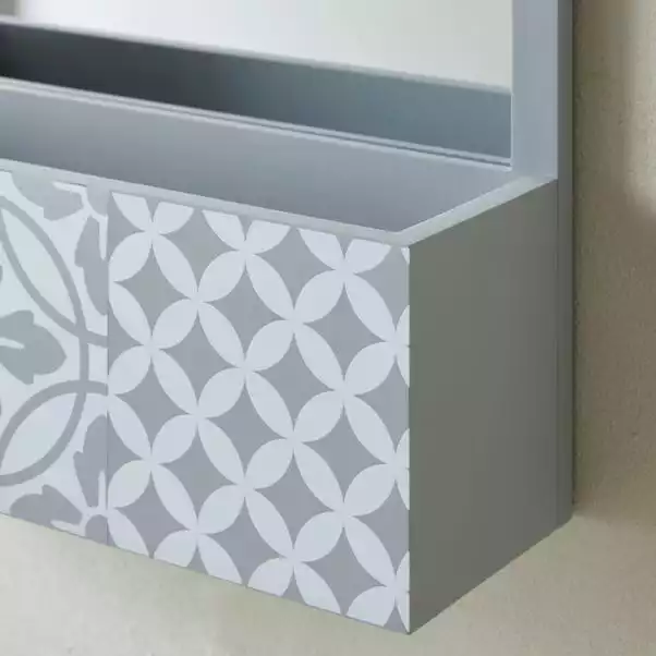 Part of the simple yet elegant Purity Geo Tile range, this mirror is ideal for adding a practical multi-purpose space-saving solution to your bathroom. This mirror features a shelf for added storage for all your bathroom essentials. In a grey colourway, this mirror would compliment any bathroom beautifully.
