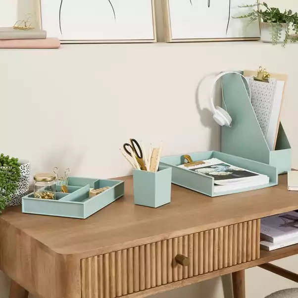 Keep your desk space organised and tidy with this stylish and on trend stationery pack, including everything you may need for an office space from magazine files to pen holders.
