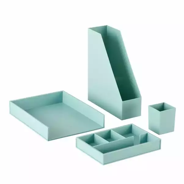 | Product Dimensions | Magazine File: H 31.5cm x W 9.3cm x D 26cm, Letter Tray: H 5.7cm x W 25cm x D 31.5cm, Accessory Tray: H 4cm x W 25cm x D 17.7cm, Pen Holder: H 9.5cm x W 7.5cm x D 7.5cm |