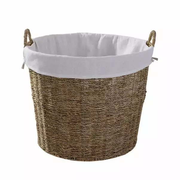 Featuring a white canvas liner, this 82 litre hardwearing log basket is made from seagrass and metal wire.