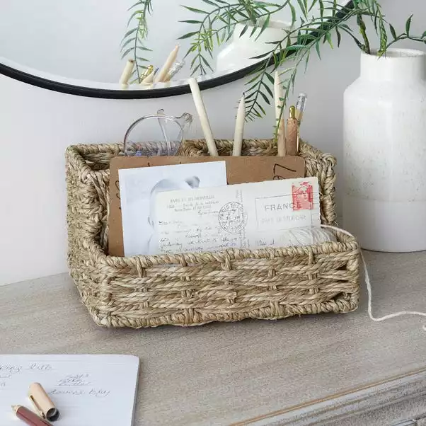Made of a natural seagrass material, this desk storage is ideal for keeping your office clutter neat and tidy. With its natural colourway, this desk storage will complement an array of office decors beautifully.